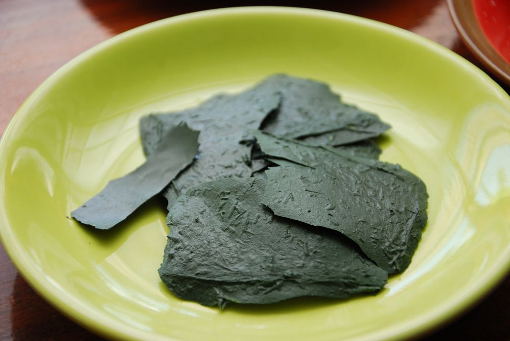 После сбора спирулину фильтруют, промывают и сушат. Готовое сырьё перерабатывают в порошок, таблетки, капсулы, хлопья, пластинки, сиропы и другие удобные для потребителя форматы. Порошки и экстракты спирулины добавляют в соусы, напитки, батончики и другую продукцию.