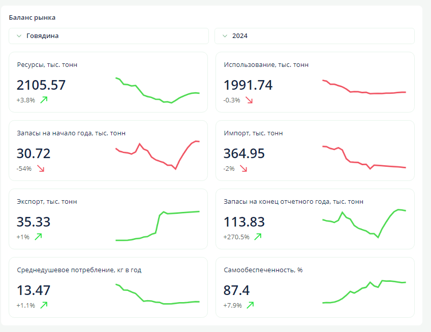 Баланс российского рынка говядины за 2024 год