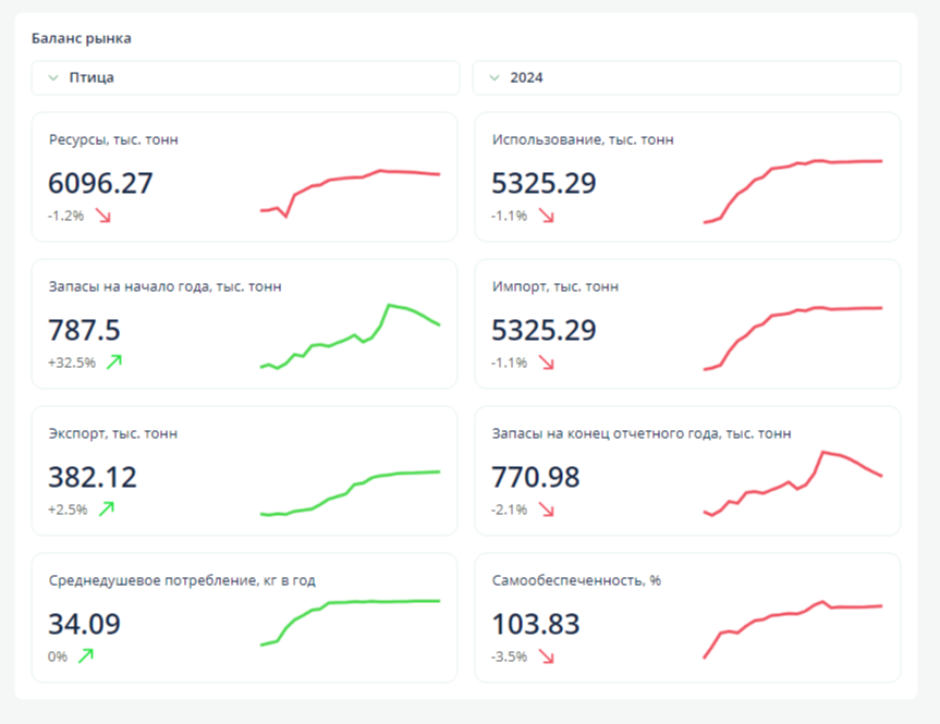 Баланс российского рынка мяса птицы за 2024 год