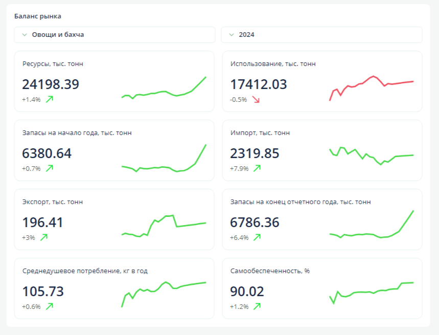 Баланс российского рынка овощных и бахчевых культур за 2024 год