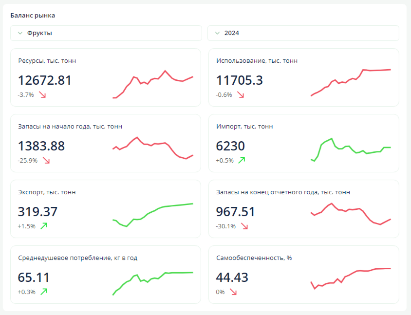 Баланс российского рынка фруктов за 2024 год