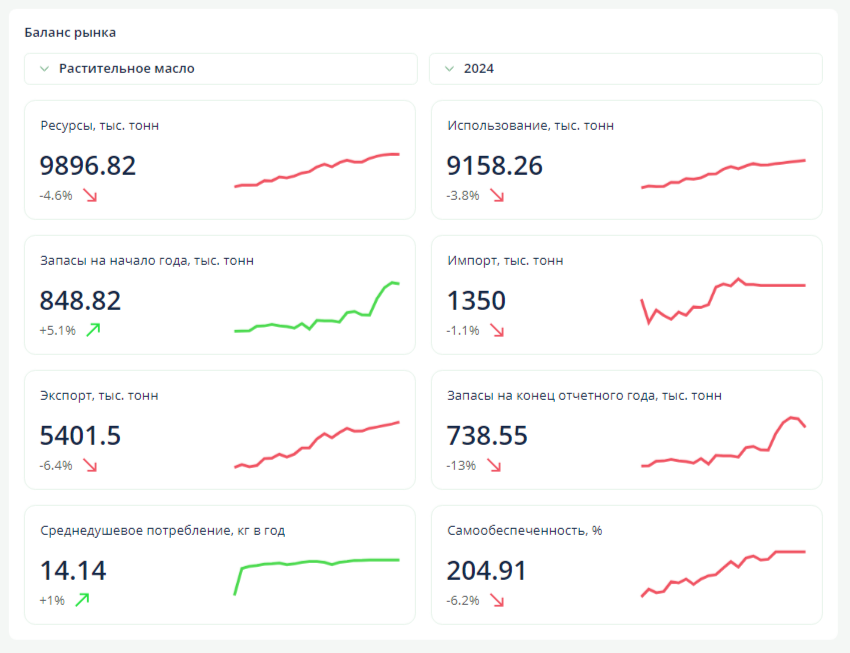 Баланс российского рынка растительного масла за 2024 год