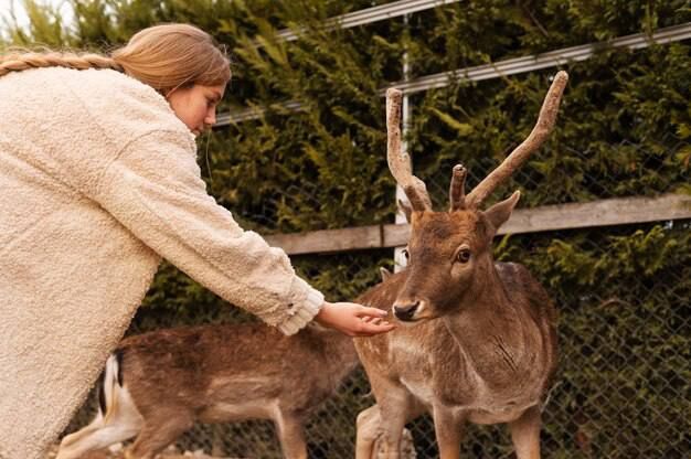 Некоторые фермеры позволяют самкам вскармливать детенышей, другие же выпаивают оленят из бутылочки, чтобы лучше контролировать кормление и поведение животного. Так олени привыкают к человеку; их будет легче лечить, если возникнут проблемы со здоровьем или понадобятся прививки.
