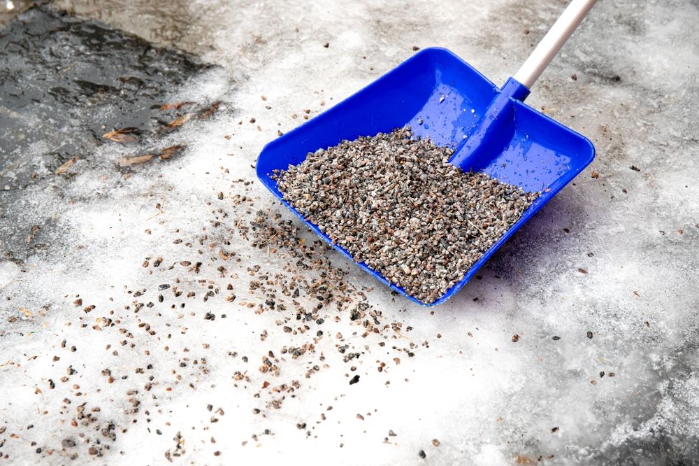 После того как снег и наледь убраны, нужно создать на поверхности шероховатый слой. Для этого хорошо подходят песок, мелкий щебень, шлак, опилки или зола (но она легко сдувается ветром). Эти материалы сразу повышают сцепление обувных подошв, шин и копыт с поверхностью. К тому же, подобная посыпка не разрушает покрытие дорог, не ускоряет естественную коррозию металла, не вредит животным и не портит обувь.