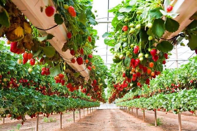 Сладкие ягоды лучше всего выращивать в теплицах с сентября по май. Именно на этот период приходится наибольший дефицит. Клубнику выращивают в контейнерах, которые расставляют на стеллажах. Крайне важно соблюсти температуру. Она должна быть около 25 градусов. А также большая влажность воздуха и проветривание.