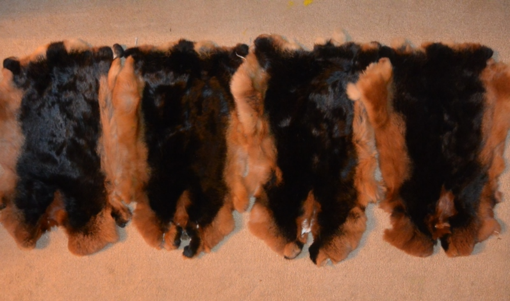 Шкурки чёрно-огненных кроликов мелкого и среднего размеров, их используют в неокрашенном виде. Небольшими недочётами в окрасе считаются: