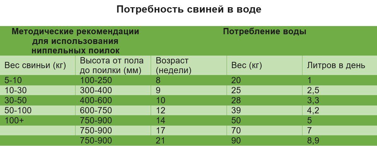 Вода в загон может подаваться через ниппельные поилки, автоматические миски или корыта – главное, чтобы вода была доступна в любое время. Потребность свиней в воде представлена в таблице 2, а советы по регуляции водного потока в ниппельных поилках – в таблице 3.
