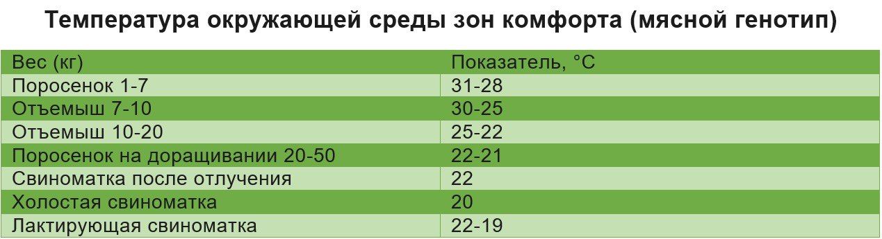 Руководство по требованиям к температуре приведено в таблице 6, но всегда следите, чтобы свиньям было комфортно.
