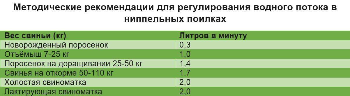 Таблица 3. Методические рекомендации для регулирования водного потока в ниппельных поилках