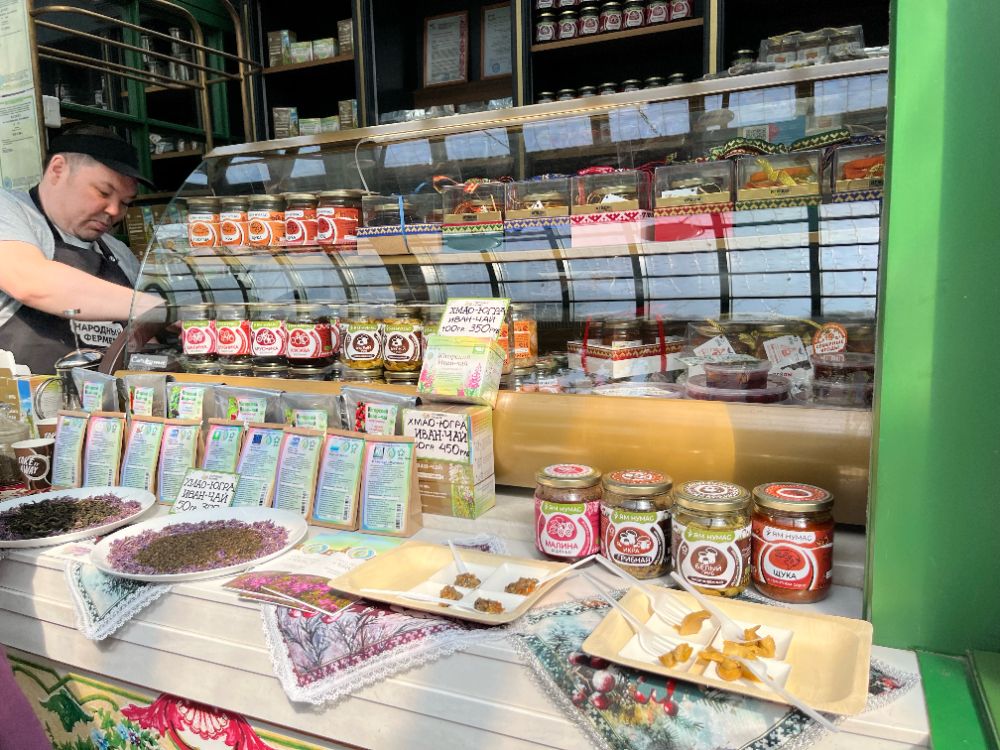 Один из самых необычных снеков на прилавках фермеров — сублимированный ревень с воздушной, хрустящей текстурой и сладким вкусом с приятной кислинкой от СПСПК «Агроальянс». Глава кооператива Иван Протасов рассказал, что этот продукт очень нишевой и покупатели только знакомятся с необычным десертом, поэтому сейчас посадки ревеня совсем небольшие. Основной ассортимент сельхозкооператива — варенья, джемы и мармелад из карельских ягод, а также новинка — сорбет «Олонецкий особый». Карельский фермер привёз на ярмарку не только сладости: покупатели могли купить несколько видов ягодной соли и соусов — отличного дополнения ко многим блюдам.