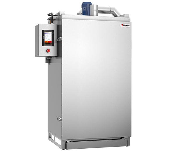 Предназначена для горячего копчения, запекания, варки, сушки и вяления продуктов питания. Подача термодымовой смеси производится снизу, что исключает забрызгивание боковых рядов продукции черным дымовым конденсатом. Коптильня снабжена поддоном для сбора жира и влаги в процессе термообработки – то есть не требует подвода канализации и воды и позволяет поддерживать помещение в чистоте.