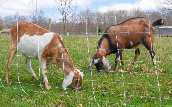 Хорошо зарекомендовали себя панели для скота на Т-образных стойках. Они прочные и портативные – это важно, если вы захотите перенести или расширить загон. Подойдет и электроизгородь – узнайте, какая модель установлена на ферме, где вы купили коз. Не говорят? Тогда экспериментируйте, но помните, что к электроизгороди вам понадобится сетка, специально предназначенная для коз.