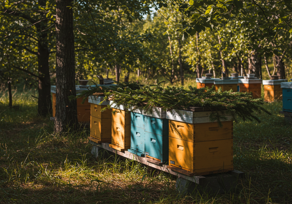 Важно: рои лучше приживаются, когда улей стоит в тени. Или пчелиный дом можно укрыть от солнца еловыми ветками. Их кладут на крышку улья с таким расчетом, чтобы пчелам можно было вылетать, а солнце на леток не попадало. Улей можно ставить на любое место, даже рядом с материнской семьей.