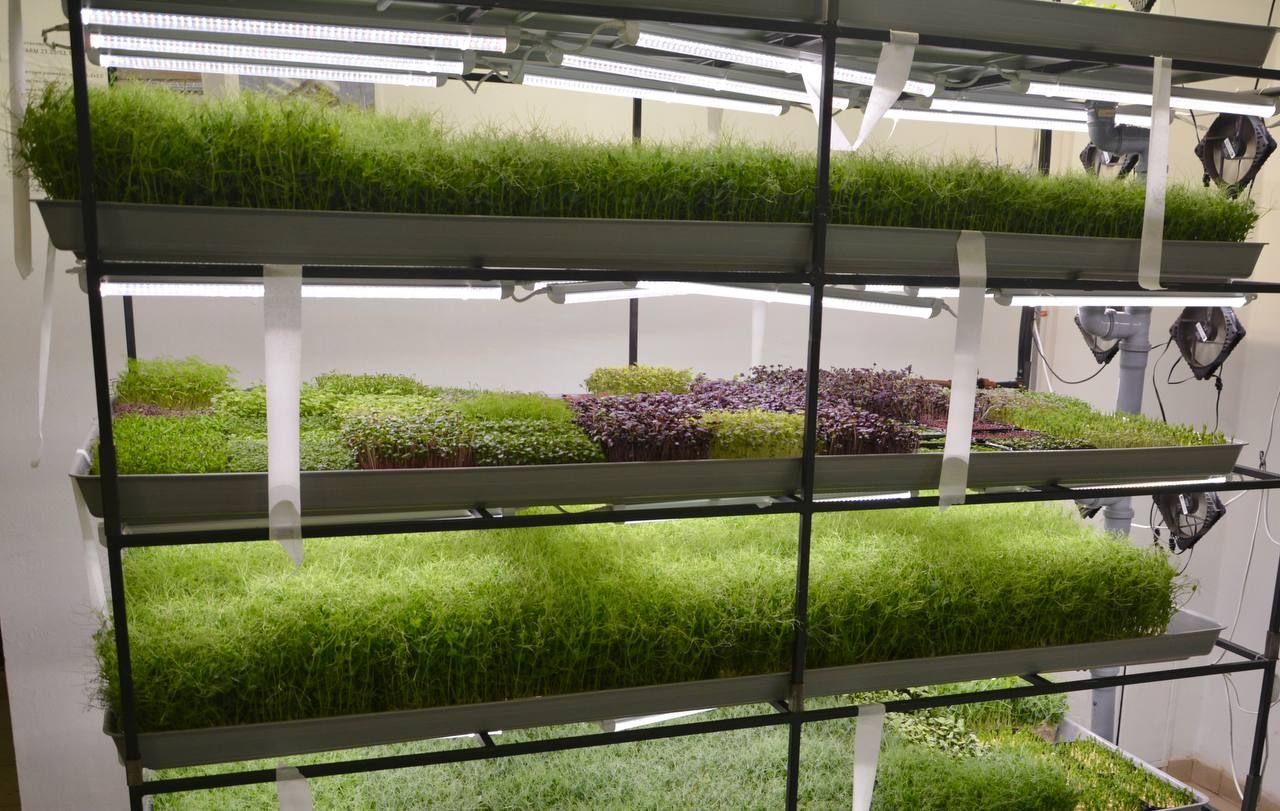 Для производства микрозелени необходимы хорошо освещенные помещения с контролируемой температурой и влажностью воздуха. Контейнеры с микрозеленью нужно освещать дневным светом 15–17 часов, или побеги будут вытягиваться и бледнеть. Поэтому теплица должна быть оборудована системой искусственного освещения, чтобы росткам поступало необходимое количество света независимо от времени суток.