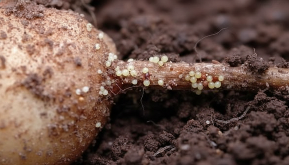 Одна циста нематоды размером с маковое зерно содержит до 500 яиц, которые могут жить в почве 10–15 лет. Если не остановить нашествие вредителя вовремя — за 3–4 года можно потерять 70–90 % урожая. Борьба с картофельной нематодой (золотистой и бледной) — это в первую очередь задача селекции устойчивых сортов.