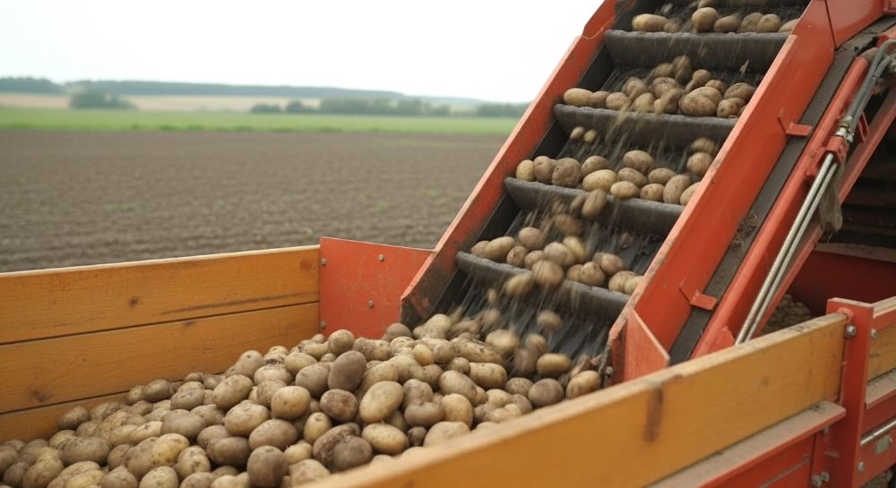 - Сбор урожая. Убирайте картофель при температуре почвы 8–12°C и влажности клубней не выше 15%. Используйте комбайны с минимальным травмированием (например, Grimme SE 150-60) или ручной сбор для малых хозяйств.
