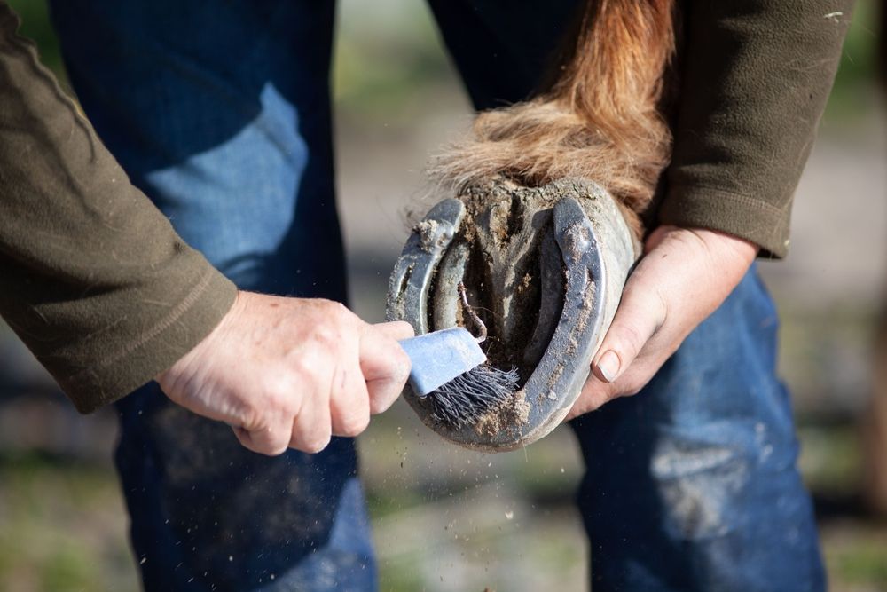 Регулярная чистка копыт. Ежедневно очищайте копыта от грязи, снега и льда, используя крючок с щёткой или небольшой молоточек. Это важно делать, даже если зимой ваши лошади проводят меньше времени на свежем воздухе. Кроме того, что чистые и сухие копыта меньше подвержены инфекциям и травмам, во время чистки проще заметить повреждения, трещины и другие дефекты.