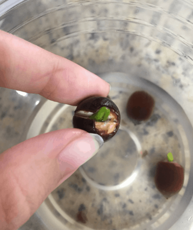 - Подготовка семян. Семена должны быть твёрдыми, с плотной оболочкой, без повреждений и признаков гнили. Перед посадкой нужно скарифицировать абразивом тупой конец семени, чтобы вода быстрее проникала внутрь. После этого семена замачивают в ёмкости с водой 25-30°C до появления ростков (обычно это занимает 5-14 дней). До пересадки в водоём минимум несколько раз в неделю воду в ёмкости обновляют на 50%.