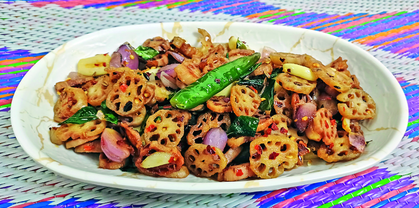 - Корневище лотоса в свежем или маринованном виде используется в салатах, супах, рагу или подаётся как самостоятельное блюдо. Также из корневищ производят варенье, чипсы и крахмал, который используется для выпечки и в качестве загустителя в соусах.