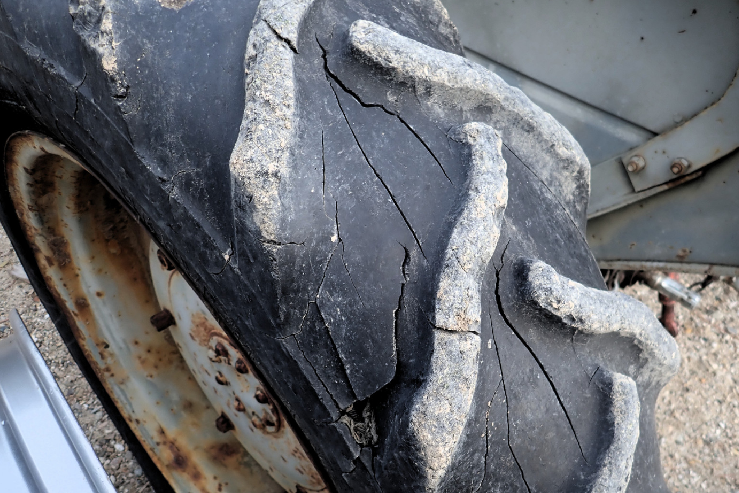 Еще один признак необходимости замены шин на сельхозтехнике – это атмосферные и озоновые трещины. Выглядят они как паутинообразная сеть трещин и проявляются с потерей эластичности резины.