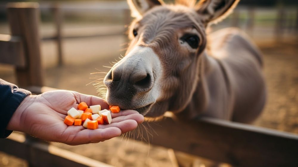 - Для поощрения давайте ослам нарезанные яблоки, груши, морковь, тыкву или другие натуральные лакомства. Общий объём угощений не должен превышать одной горсти в день.