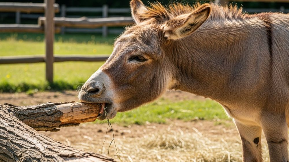- У ослов есть естественная потребность — обгрызать кустарники и кору деревьев. Не отказывайте животным в таком удовольствии и оставляйте рядом с ними брёвна и ветки.