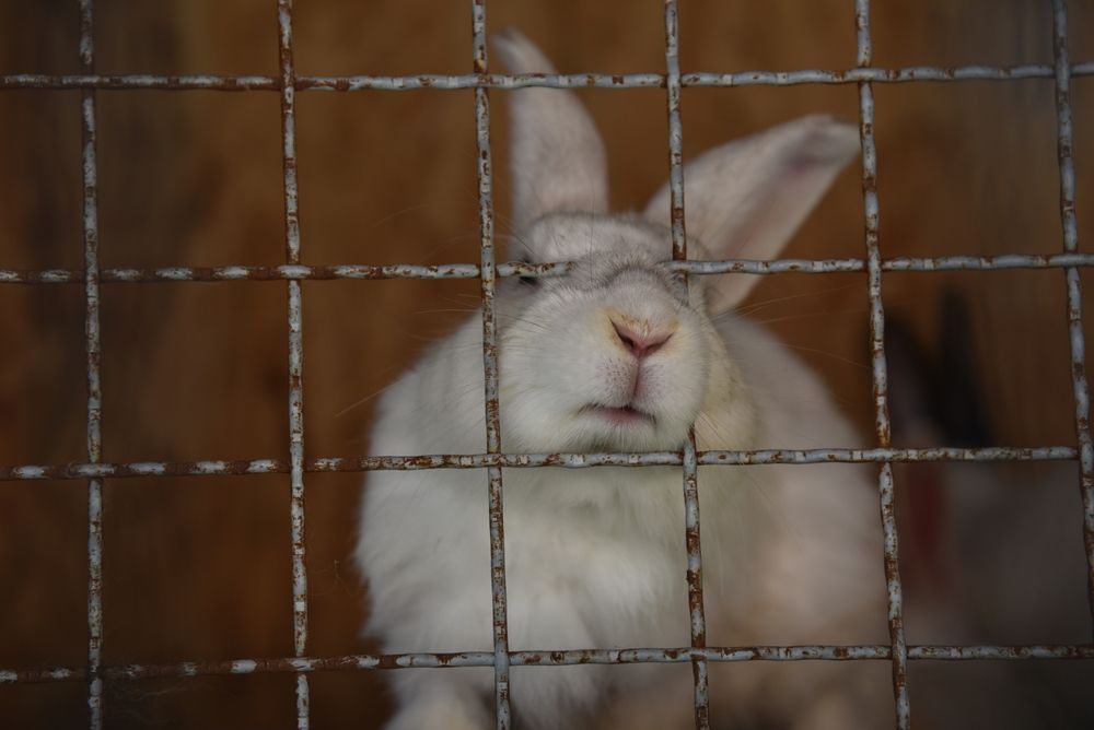 Большинство фермерских кроликов выращиваются в условиях, где есть только поилка и кормушка, а пол — из проволочной сетки. Это не позволяет вести себя естественно, например, рыть, прятаться и добывать пищу, и приводит к ненормальному поведению: кролики слишком часто вылизывают шерстку и постоянно грызут прутья клетки.