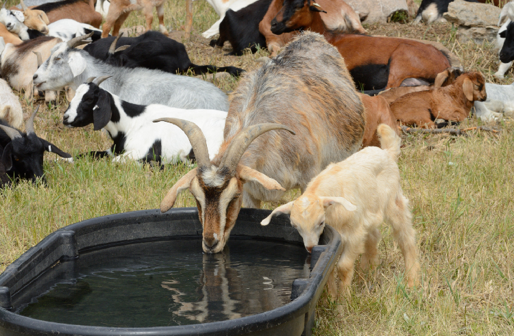 Способы смягчить тепловой стресс включают управление водоснабжением (и его наличием) в жаркую погоду. Обеспечение свободного доступа к прохладной и свежей воде – в неограниченном количестве в любое время – очень важно для каждого животного. Установка навеса/тента над резервуарами для воды или перемещение источников поения в затененные места снизит температуру воды, увеличит потребление и снизит внутреннюю температуру тела. Временную тень можно обеспечить с помощью брезента или тентов, но убедитесь, что такие временные конструкции не угрожают безопасности домашнего скота, особенно любопытных мелких жвачных животных.