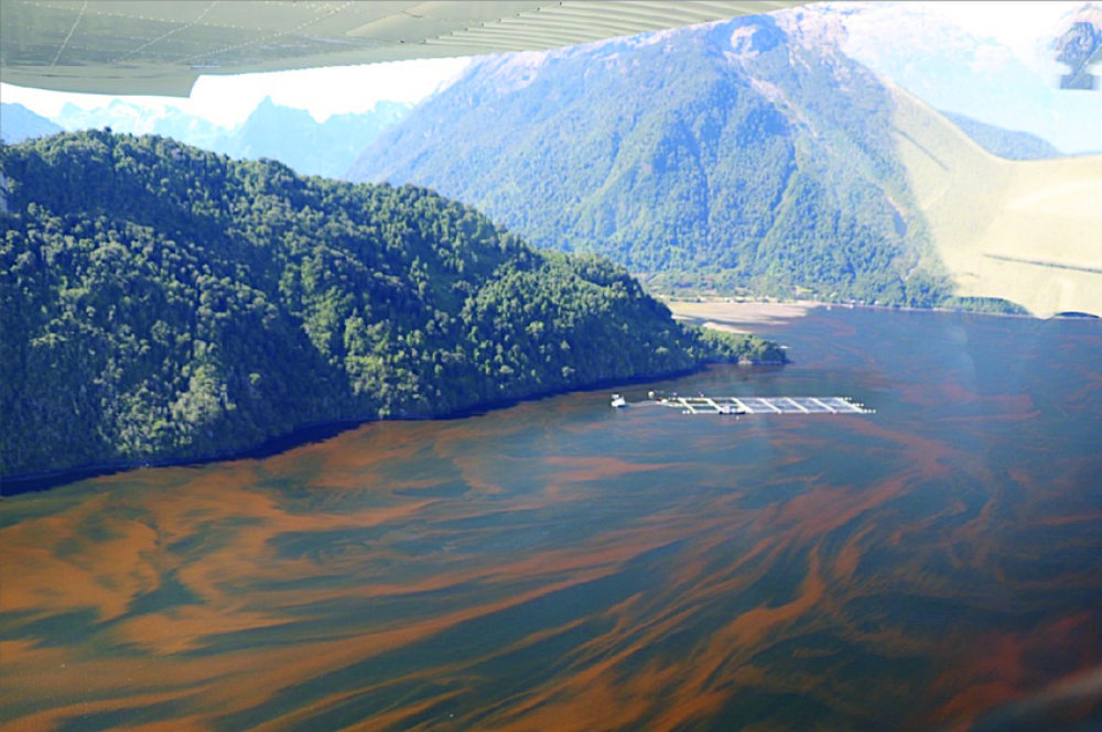 В 2016 году на аквафермах в Чили началось массовое цветение воды из-за микроводоросли Heterosigma akashiwo, токсины которой в больших концентрациях опасны для морских животных. Популяция этой водоросли резко выросла из-за загрязнения воды отходами и антибиотиками, повышения температуры океана на 2-4°С и почти полного штиля.