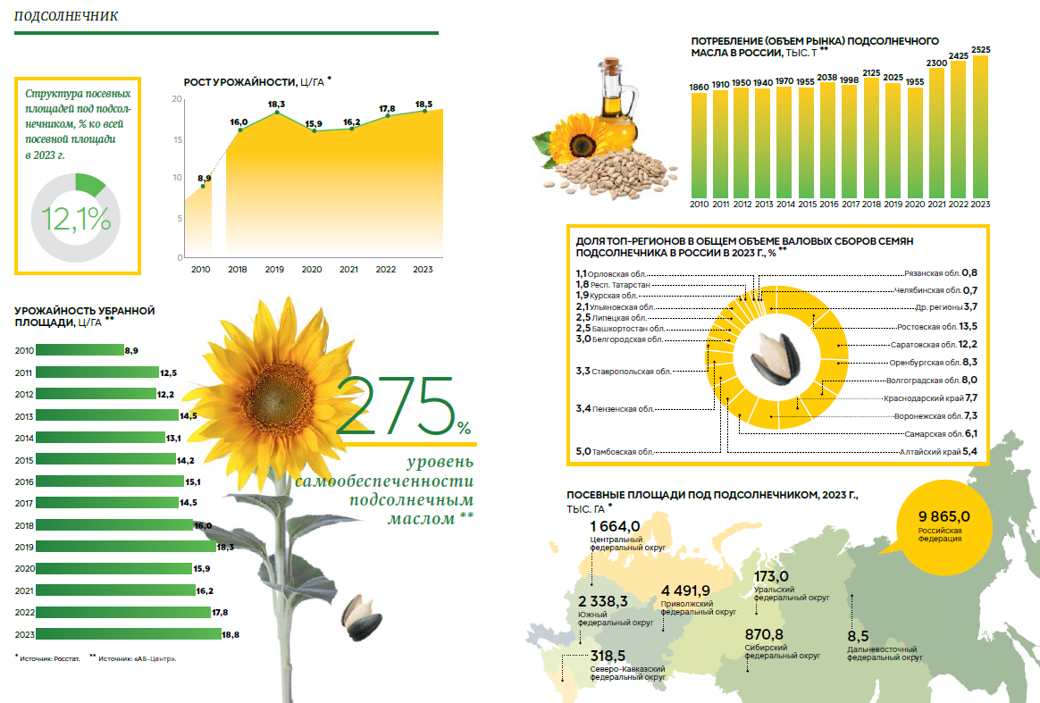 По оценкам АНО «Институт развития предпринимательства и экономики» по итогам 2024 года объемы могут превысить 10 млн тонн. Напомним, что в 2023 году Россия заняла первое место в мире по объемам производства подсолнечного масла – всего было выработано 6,5 млн тонн этого продукта.