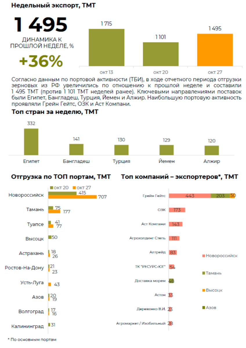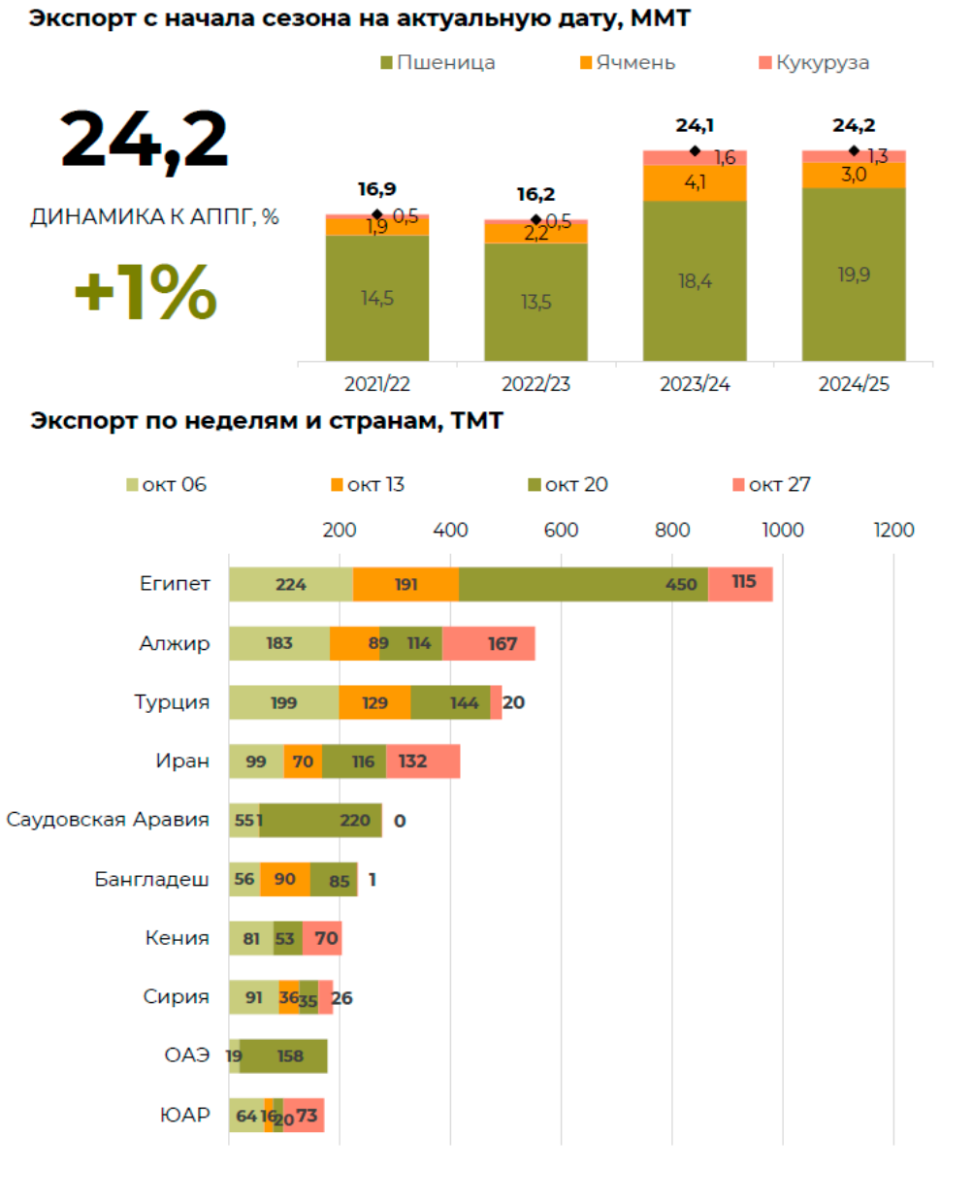 Внешняя торговля. Экспорт зерновых из РФ на 27.10*