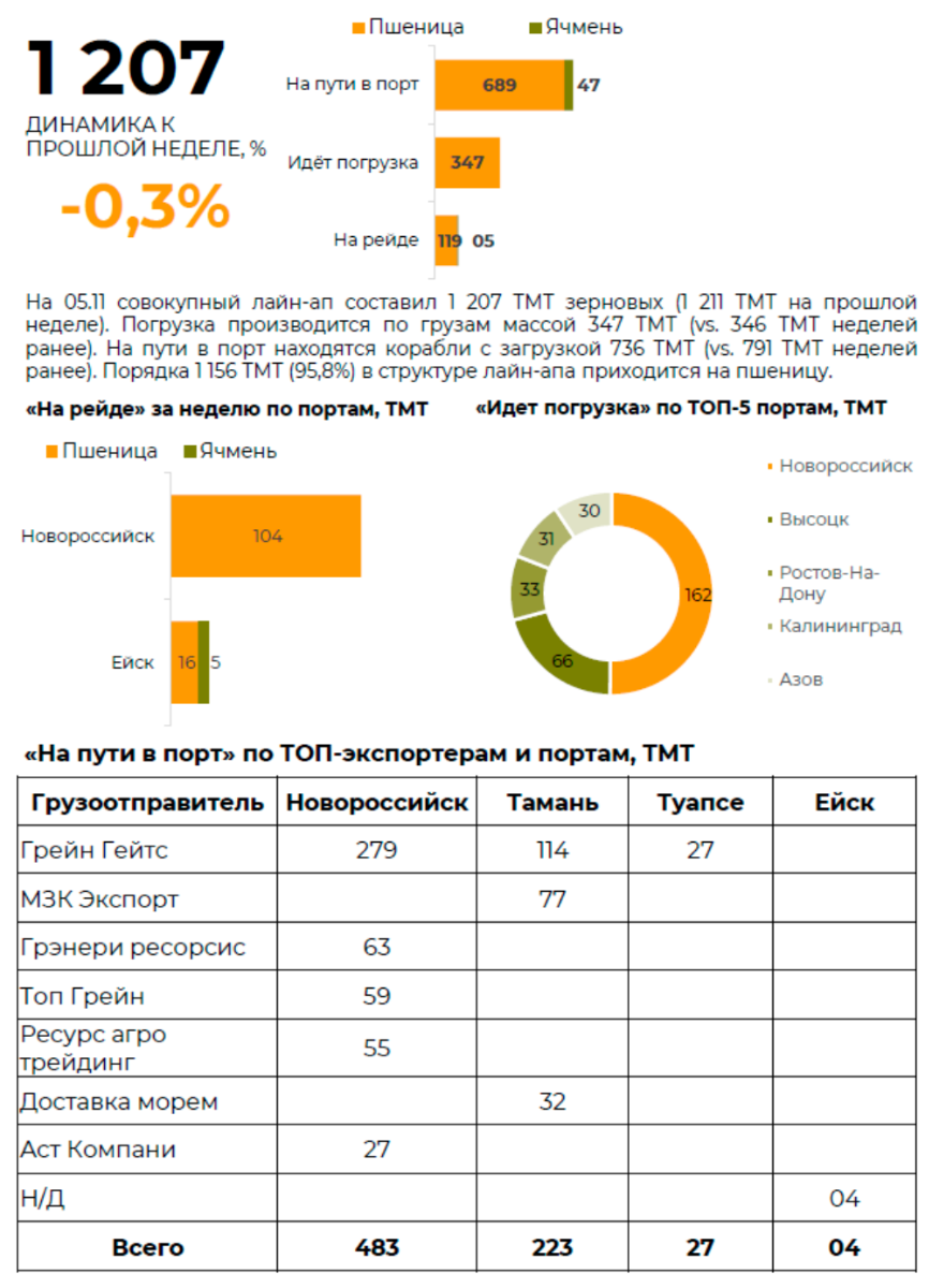 Внешняя торговля. Экспорт зерновых из РФ морем на 27.10