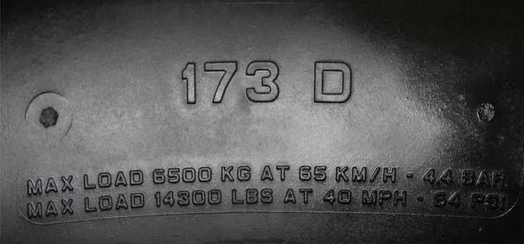 На боковине шины можно найти индекс скорости нагрузки. Здесь: индекс 173D.