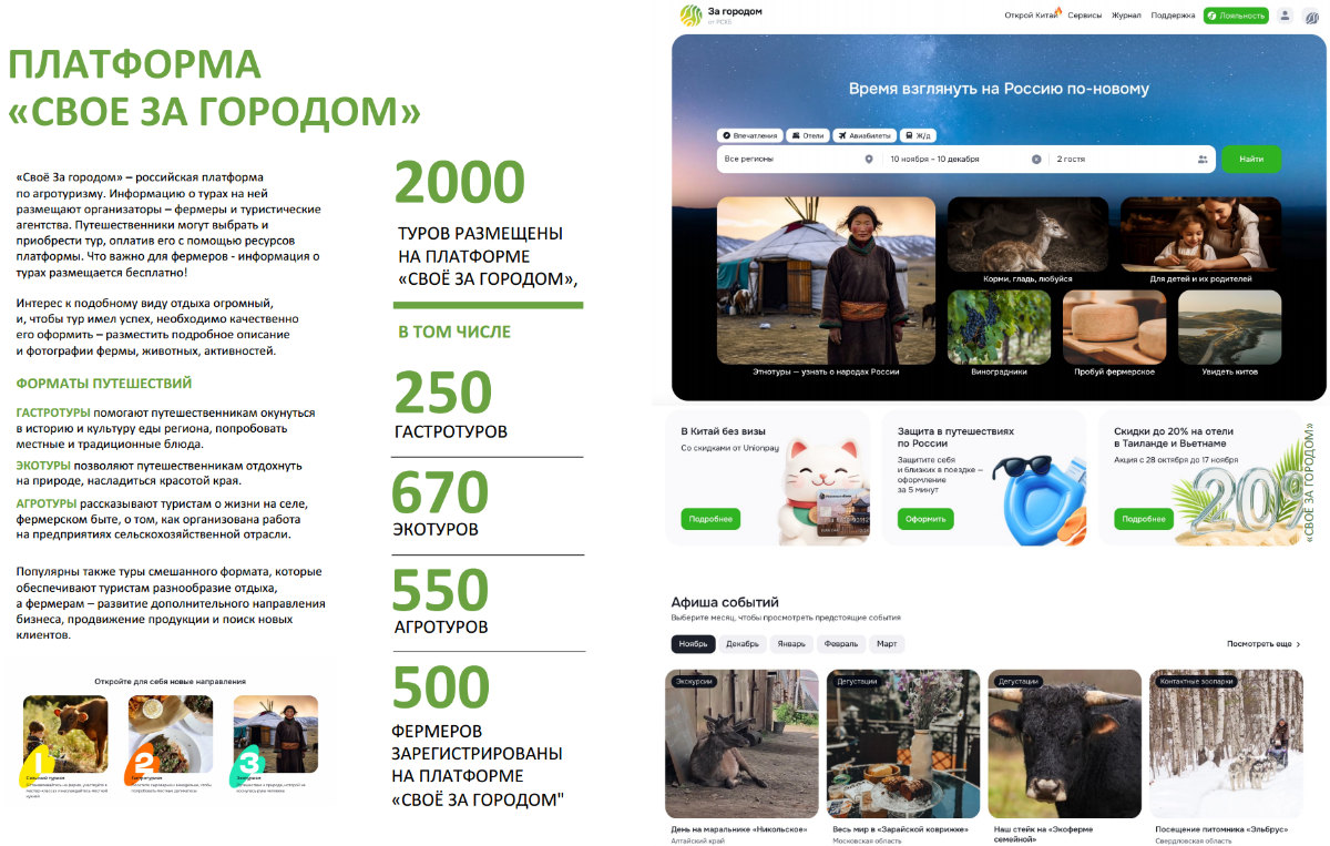 Популярны также туры смешанного формата, которые обеспечивают туристам разнообразие отдыха, а фермерам – развитие дополнительного направления бизнеса, продвижение продукции и поиск новых клиентов.