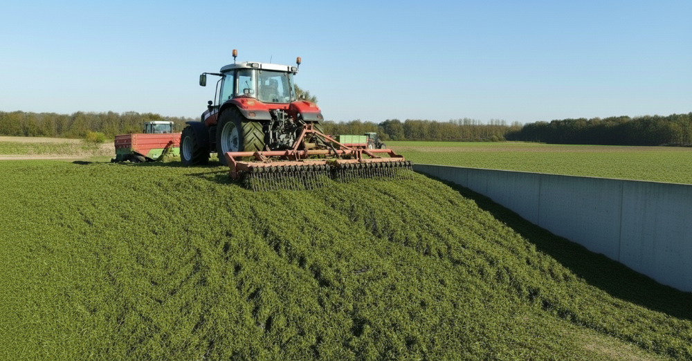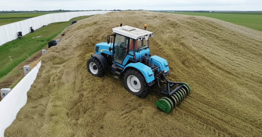 Измельчение. Длина резки должна быть 2-4 см. Слишком длинные стебли плохо уплотняются, оставляя воздушные карманы — идеальные условия для плесени.