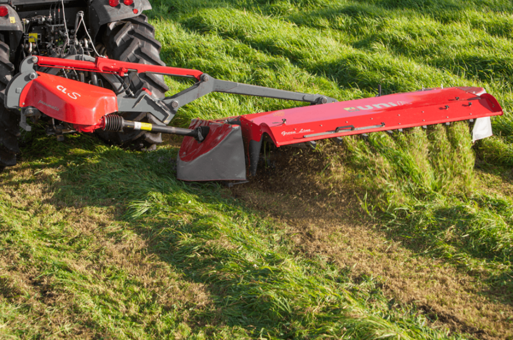 Крупные профессиональные молочные хозяйства часто приобретают триплекс-комбинации косилок – у них чрезвычайно высокая производительность, они маневренны, но при этом и требовательны: к ним нужны хорошая культура полей, энергонасыщенный трактор и опытный механизатор. Отличный пример такого комплекса – дисковая косилка-плющилка с конвейерной лентой FC от KUHN, которая за один проход проводит и скашивание, и плющение, и валкование.