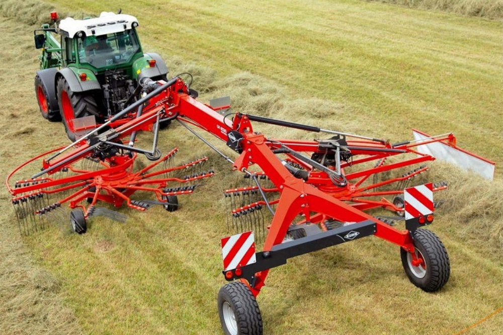 Профессиональное решение для молочных хозяйств – валкообразователи ленточного типа. Эти машины дорогие, но они поднимают качество заготавливаемого корма на весьма высокий уровень и отличаются самым чистым подбором зеленой массы. Наиболее популярная модель этой категории на рынке – французский валкообразователь KUHN MERGE MAXX 950. Он способен работать с любыми культурами – легкими или тяжелыми, с плотной массой или рыхлой, короткостебельными или длинностебельными, на любых типах полей. В частности, их рекомендуют использовать при работе с деликатными культурами для сохранения максимальной питательной ценности. Этот валкообразователь прекрасно подходит для небольших и средних хозяйств.