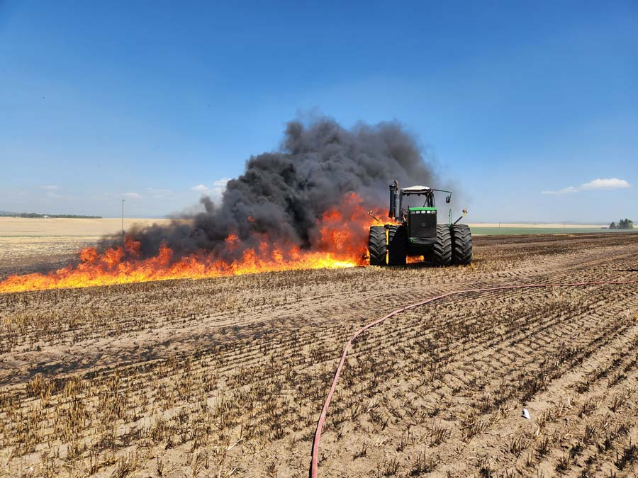 - Затем, когда все будут в безопасности, подготовьтесь к эвакуации скота в случае распространения огня и подготовьтесь к использованию сельскохозяйственной техники для оказания помощи пожарным и спасателям в перемещении соломы/сена и т. д.