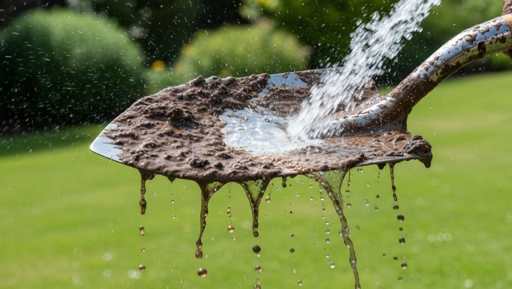 После работы инструмент нужно очистить от земли и растительных остатков, промыть водой и вытереть насухо. Даже визуально сухая почва удерживает влагу, из-за чего загрязнённый металл продолжает ржаветь уже в месте хранения.