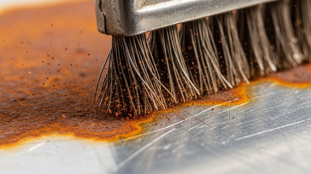 Для механического снятия ржавчины используют металлические щётки, наждачную бумагу или шлифовальные насадки. Задача — удалить рыхлый ржавый слой до неповреждённого металла. Этот способ подходит для лопат, мотыг, рам, крепежа и большинства деталей, где не требуется ювелирная точность.