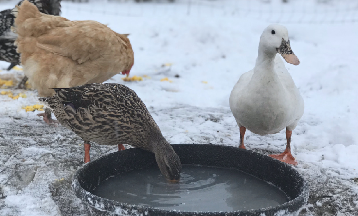 Не беспокойтесь, совсем не обязательно оборудовать теплый зимний пруд или бассейн. Вместо этого оставьте уткам небольшой резервуар с подогревом – но только не стандартную поилку для кур: уткам будет трудно из нее пить.
