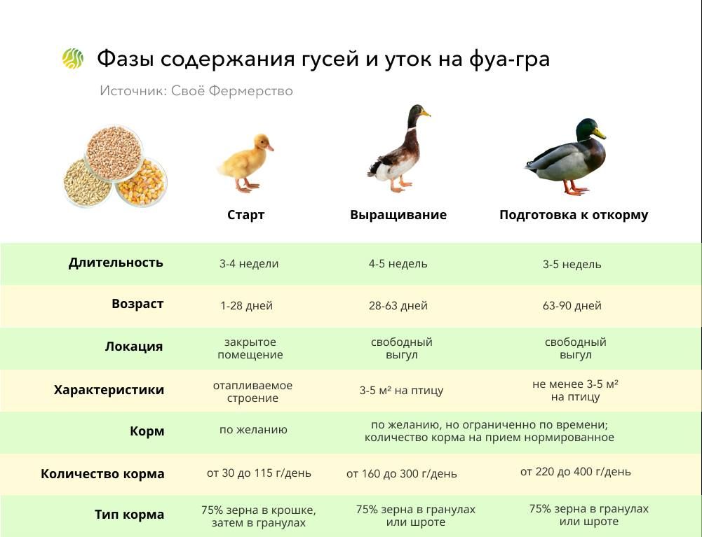 Печень на предварительном откорме еще не имеет нужных характеристик. Ожидаемый вкус она приобретет только на этапе откорма. Такая программа кормления при подготовке к откорму создает необходимые условия для откорма и сокращает его продолжительность.