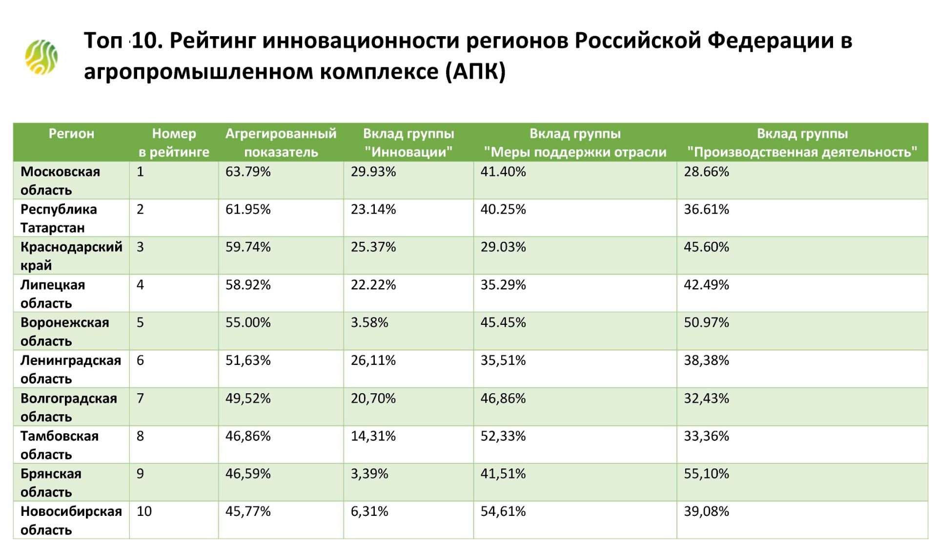 Рейтинг инновационности регионов Российской Федерации в агропромышленном комплексе