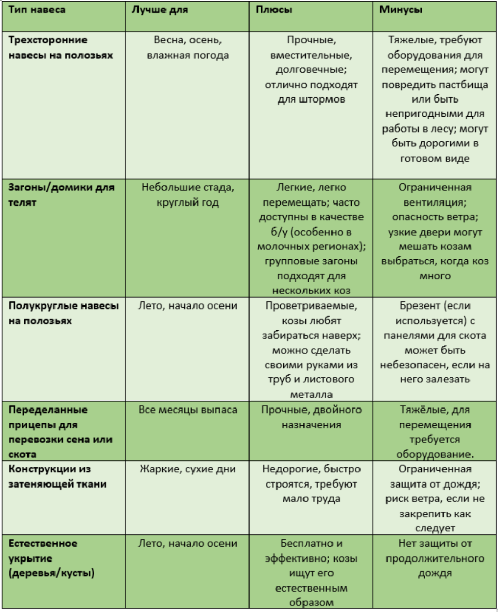 Сравнение вариантов навесов для пастбищ для коз