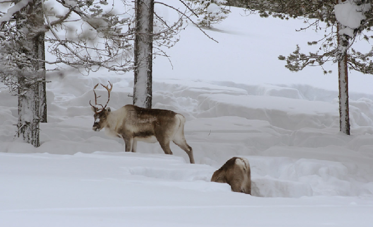 Чтобы добыть корм из-под снега, олень каждый день раскапывает в среднем 70 метров лунок. На этот процесс животное затрачивает много энергии, а потребность в питательных веществах по сравнению с другими сезонами года возрастает на 35%.