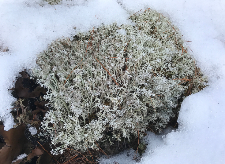 Северный олень находит лишайник под снегом благодаря хорошему обонянию. Зимой на мягком снегу можно увидеть круглые следы от морды оленя: если он не учует запах корма, зря рыть не будет. Если же запах есть, другое дело. Олень выкапывает в снегу лунку. Сначала он разгребает снежный покров, а если снег глубокий, расширяет лунку – это облегчает копание, поскольку нет необходимости выбрасывать оттуда снег. Ближе к весне копать становится сложнее. Тогда олени начинают поедать мох-бородач или продвигаются дальше, в сопки.