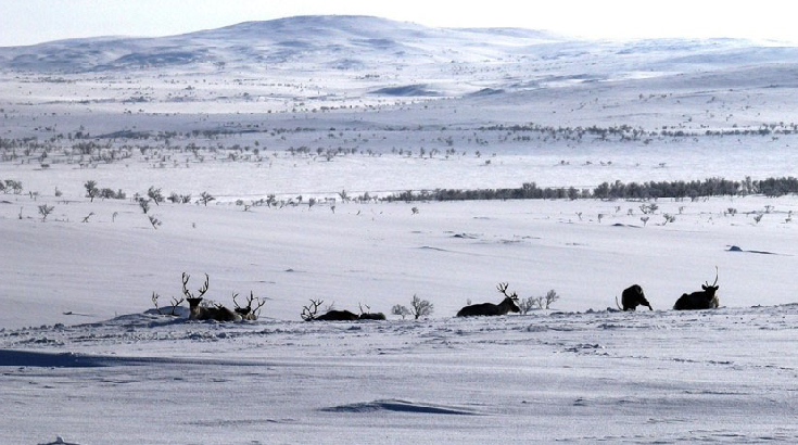 В разгар зимы на Крайнем Севере солнце не всходит вообще. Долгая темнота, густой снежный покров и морозы – тяжелое испытание для оленей. За зиму они теряют 10-20% процентов набранного осенью веса, а в суровые годы даже до 40% процентов. Для выживания северного оленя решающее значение имеют качество и доступность зимнего корма – и конечно, наличие жировой прослойки
