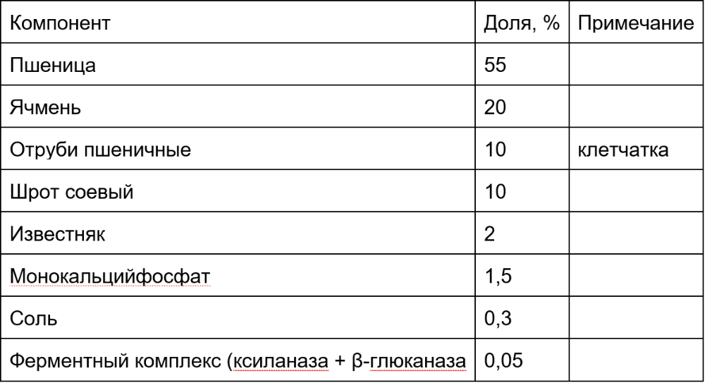 Используем 50/50 смесь схем 1 и 2 + овёс цельный 5 % (клетчатка + β-глюканы).