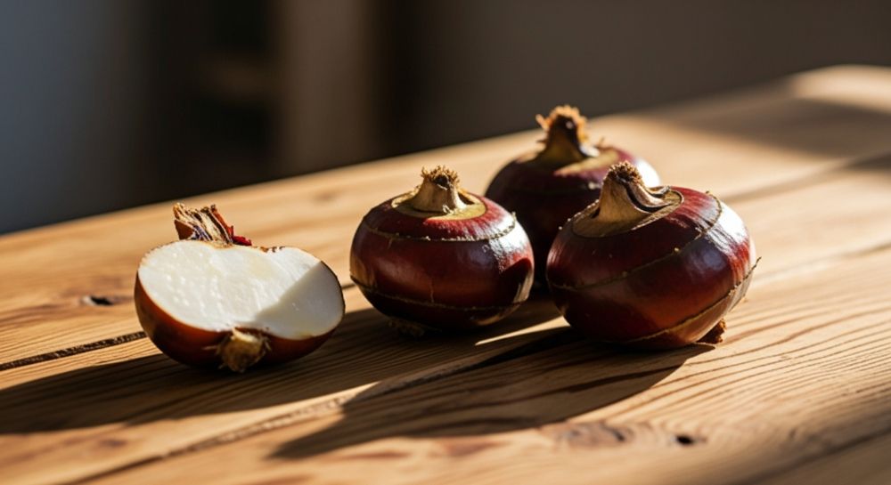 - Китайский водяной орех (Eleocharis dulcis) — это вовсе не орех, а клубень осокового растения Болотницы сладкой. Плантации водяного ореха устраивают на заболоченных или специально затапливаемых участках. Основные регионы производства этой культуры — Китай (особенно провинции Гуандун и Фуцзянь), Таиланд и Филиппины. Клубни ценятся за высокое содержание крахмала и сахаров, а также за хрустящую текстуру, которая сохраняется даже после варки или жарки. Их используют в традиционной китайской и тайской кухне, добавляют в супы, салаты и десерты. Кроме того, из них делают консервы и крахмал.