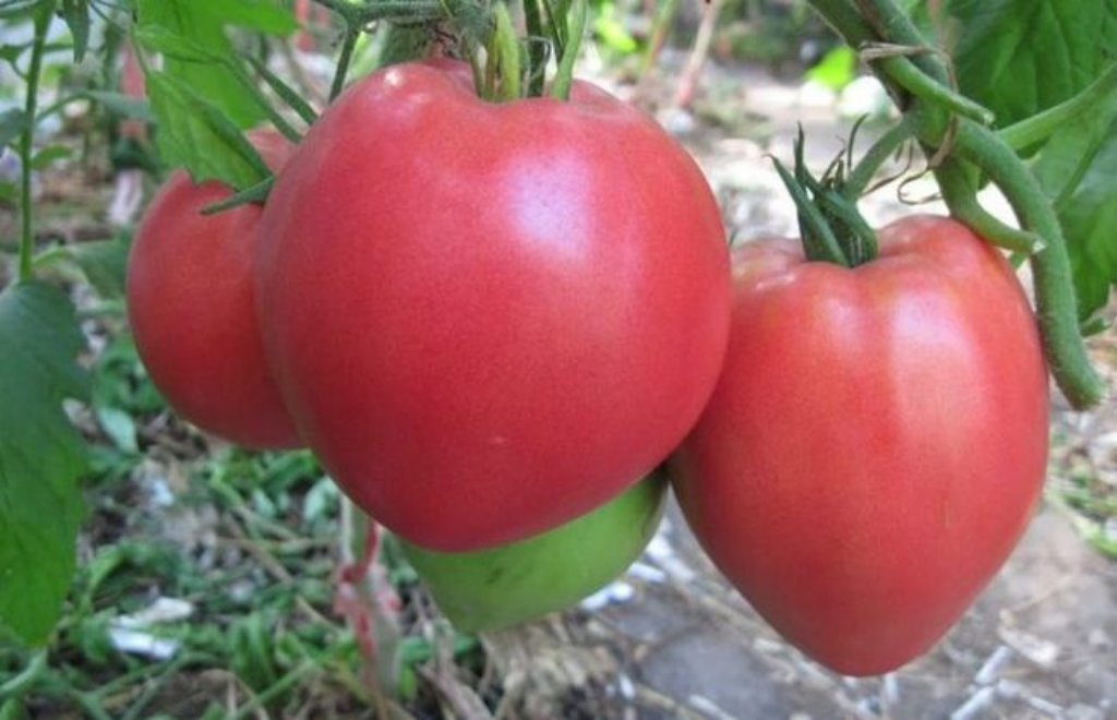 Урожайный сорт, дающий до 10–11 кг с 1 кв.м. Обладает высокой стойкостью к распространенным болезням томатов, хорошо переносит похолодания. Крупные плоды имеют сердцевидную форму, при созревании окрашиваются в розовый цвет. Средний вес томата – от 400 до 800 г, самые крупные вырастают до 1,2 кг. Плоды вкусные, мясистые, многокамерные.